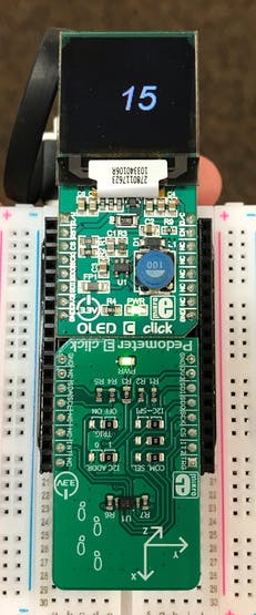 and followed the instructions on the Hackster project. For the Pedometer input, Mikro makes a Pedometer Click: