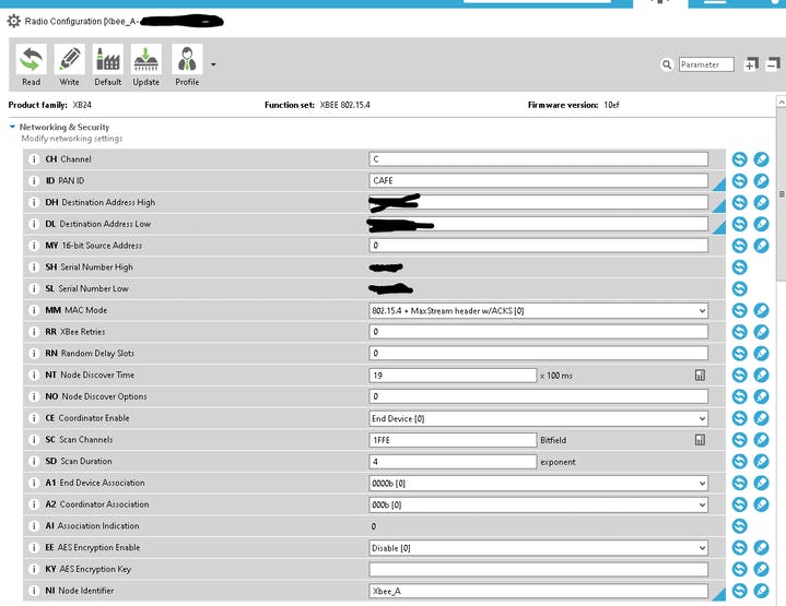 This will bring you to another screen where you can alter your radio module AT attributes.